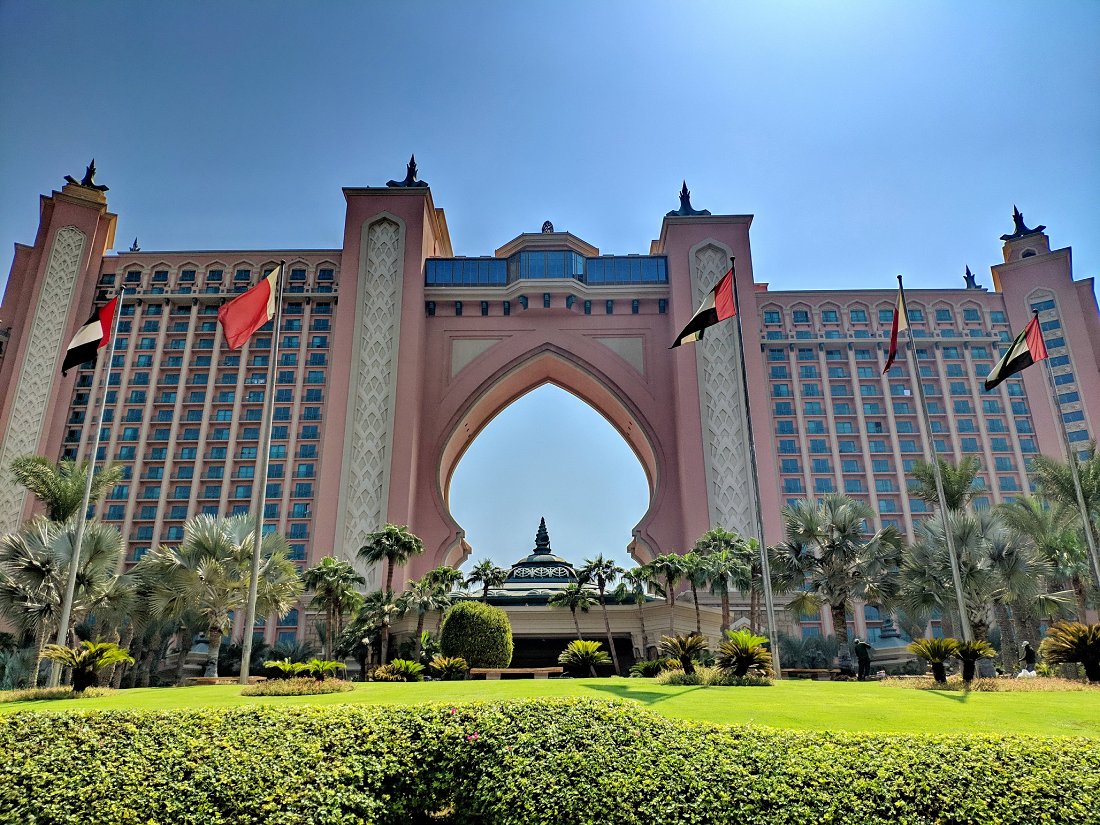 В контексте однодневного маршрута сюда удобно доехать на Palm Monorail, а дальше пройти к смотровой Atlantis • View Point. Вы можете сделать фотостоп у арочного корпуса отеля и прогуляться вдоль воды.
